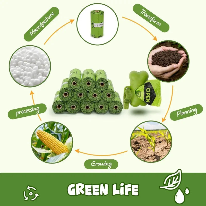 Thick Waste Dog Poop Bag Set with Dispenser & Leash Clip